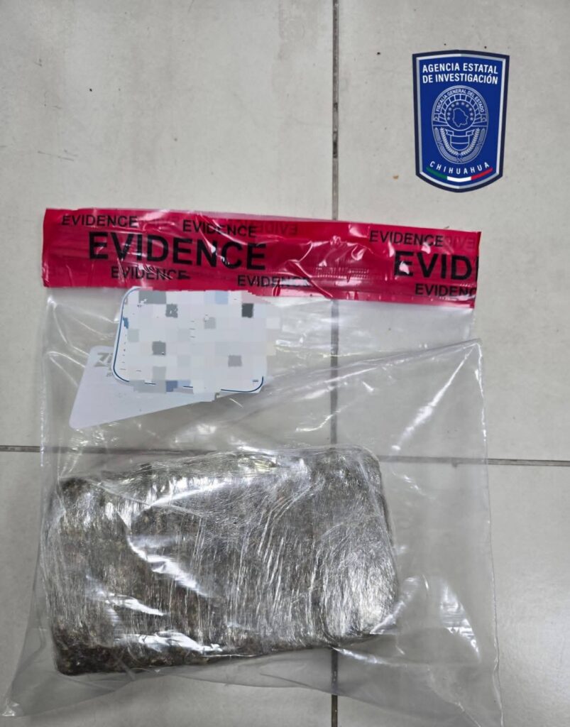 • Un envoltorio de plástico transparente, que contenía una hierba verde, seca y olorosa, con las características de la droga denominada mariguana, de un peso aproximado de 401 gramos.