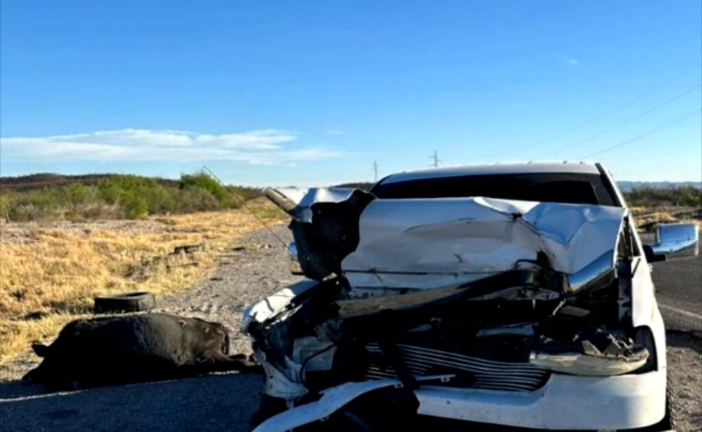 El hombre se dirigirá de Dallas a Durango cuando se le atravesó la vaca de gran tamaño en la carretera.