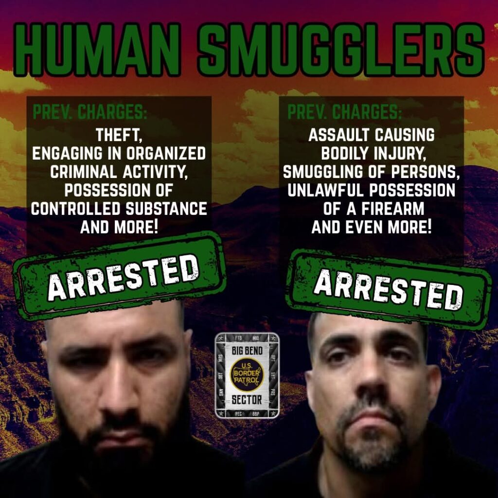 MARFA TEXAS.-Agentes del sector Big Bend de la Patrulla Fronteriza de Estados Unidos arrestaron a dos presuntos traficantes de personas con antecedentes penales, según un comunicado reciente de la agencia.