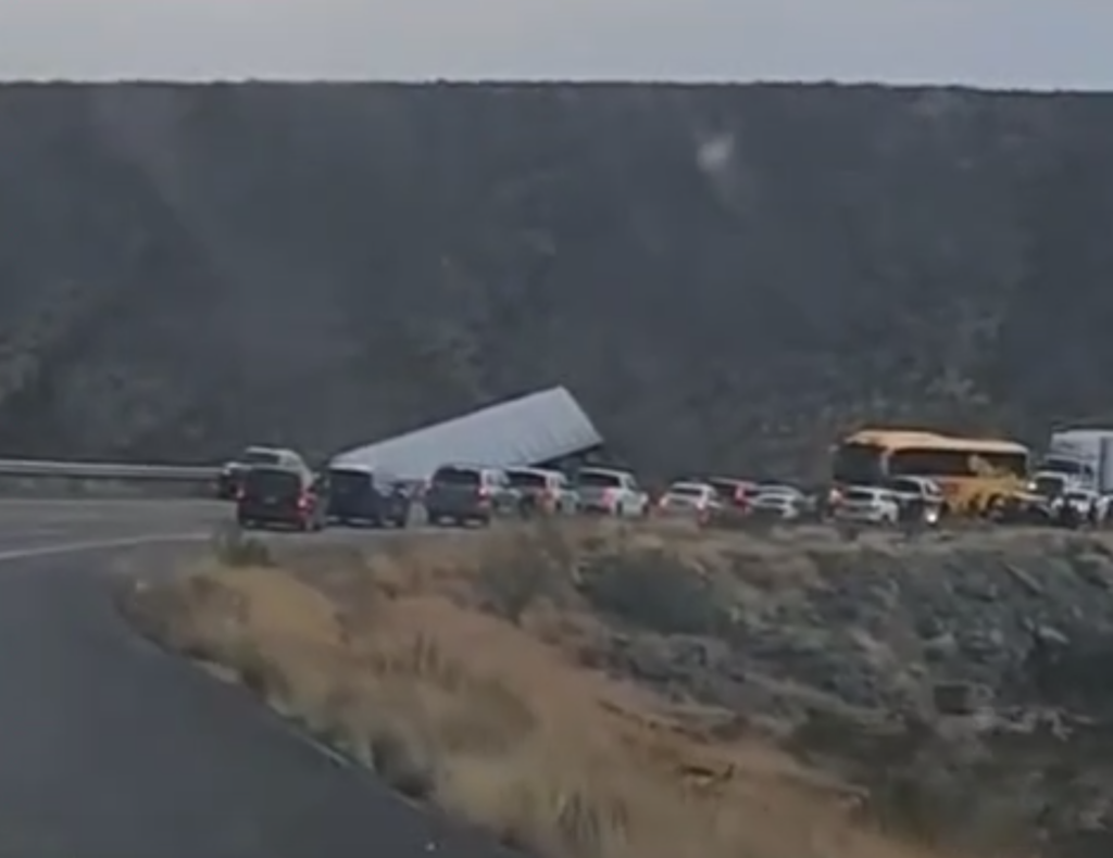 El accidente se registró a las 08:45 de la mañana, los vehículos involucrados son un tractocamion de transporte color blanco y una pick up Chevrolet color gris Z21.