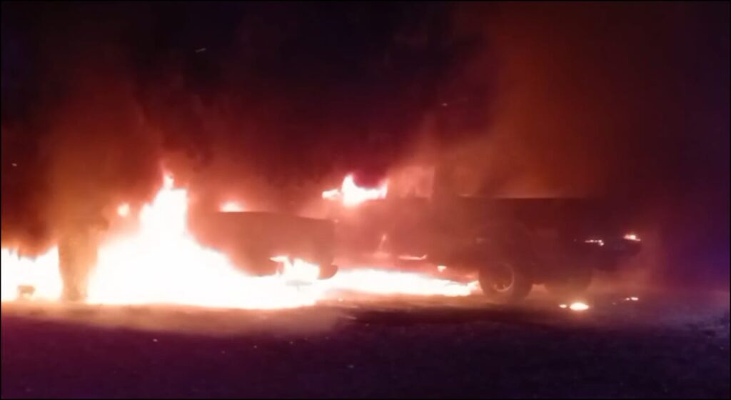 Al lugar acudió personal de Bomberos Voluntarios quienes sofocación el incendio de estos tres vehículos en donde afortunadamente no se reportan personas lesionadas.