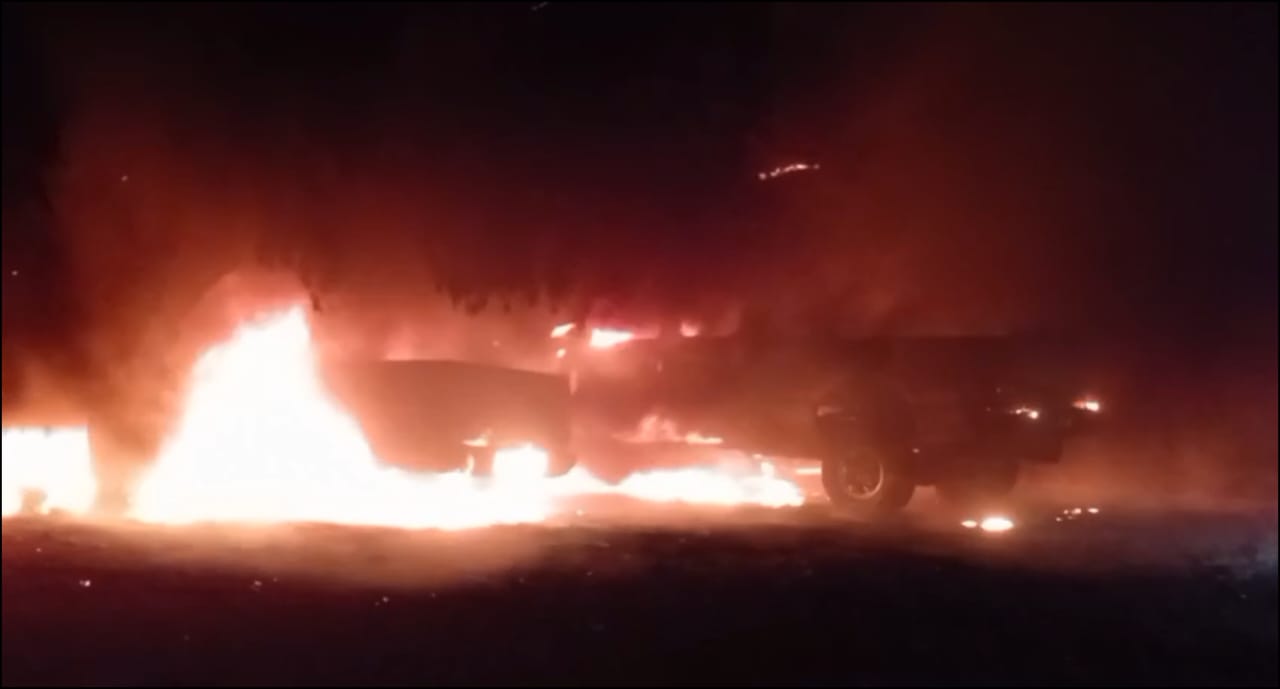 Al lugar acudió personal de Bomberos Voluntarios quienes sofocación el incendio de estos tres vehículos en donde afortunadamente no se reportan personas lesionadas.