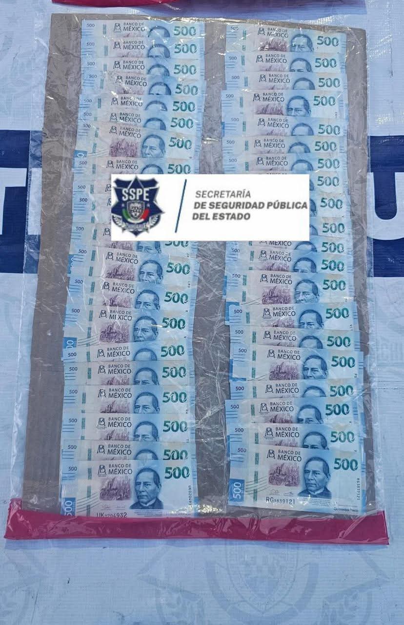Durante la intervención, el sujeto intentó ofrecer a los elementos la cantidad de 20 mil pesos en efectivo, conducta que constituye un delito, por lo que se procedió a su formal arresto, junto con el aseguramiento del vehículo y los objetos localizados.