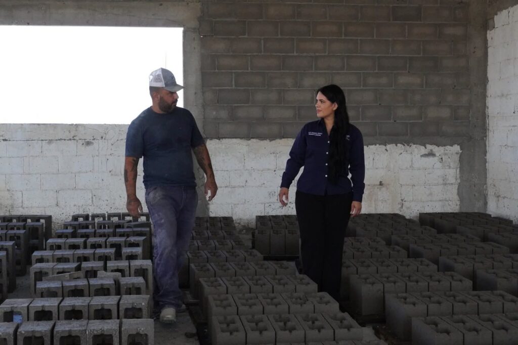 La Alcaldesa Lucy Marrufo estuvo presente en los patios de Obras y Servicios públicos en donde se producen adoquines y bloques de cemento mismos que son utilizados en algunas obras que se realizan en el municipio.
