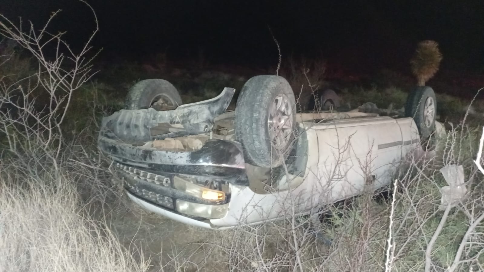 La noche de este domingo se registró una volcadura en la carretera Ojinaga a Camargo el cual dejo como saldo daños materiales y una persona lesionada; el accidente se ubico a la altura del kilómetro 178+700 cerca del entronque hacia Manuel Benavides.