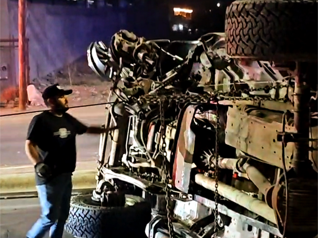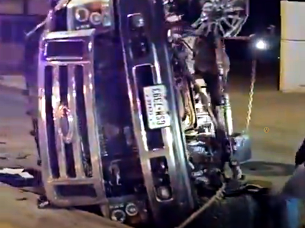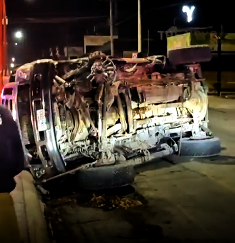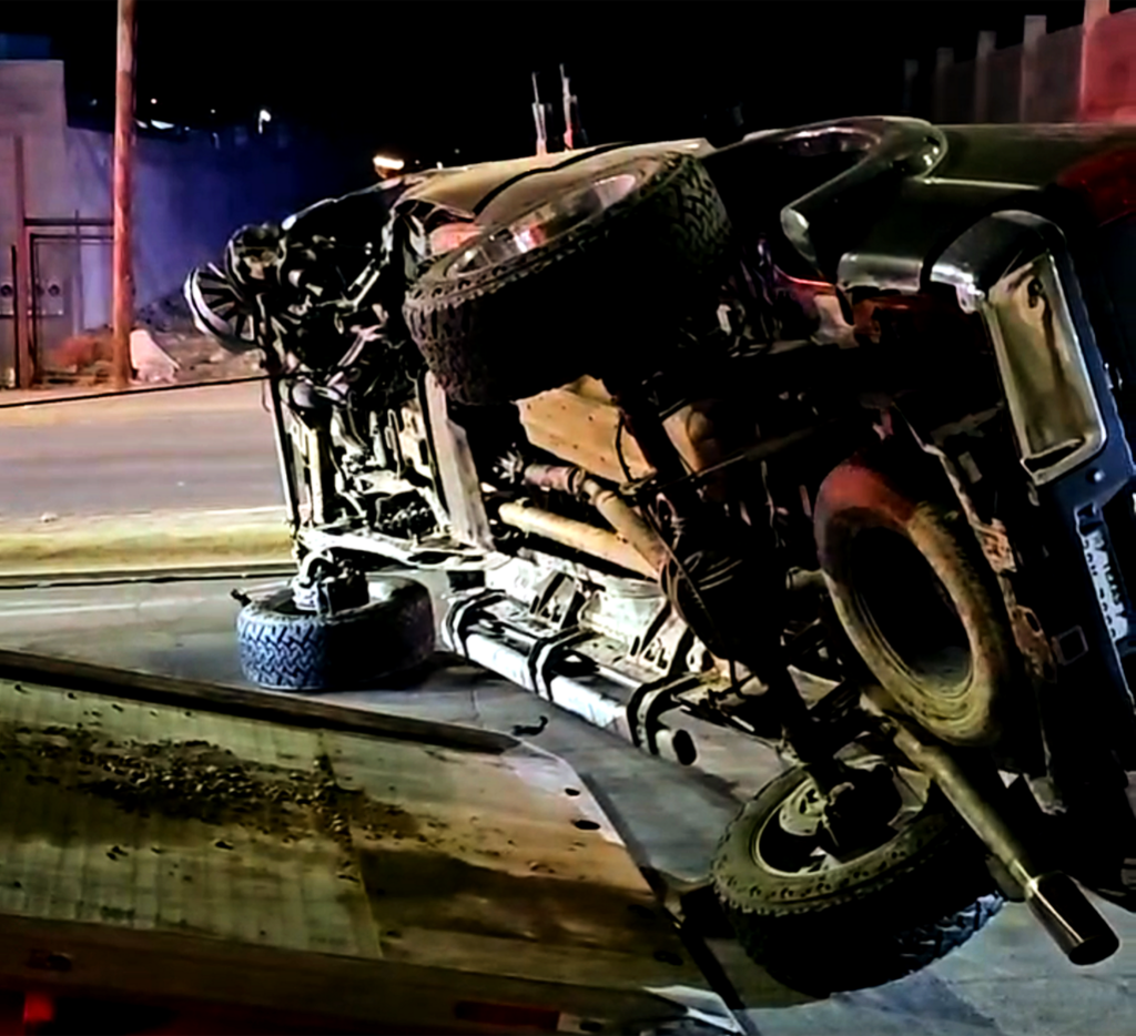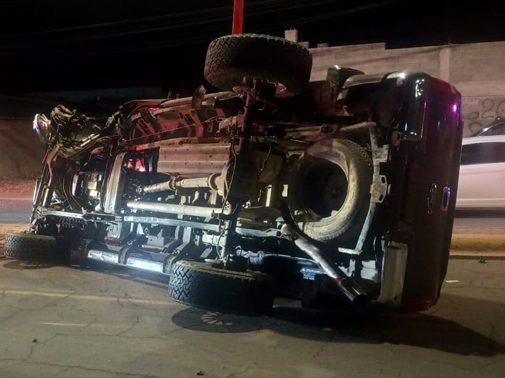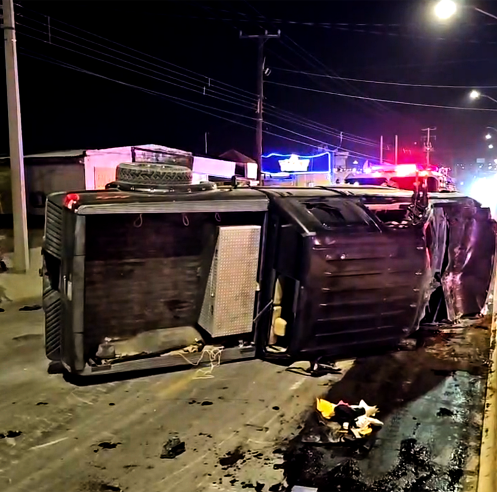 El vehículo involicrado en este accidente es una pickup Ford super duty color guinda con placas de Texas conducido por un masculino y dos femeninas.