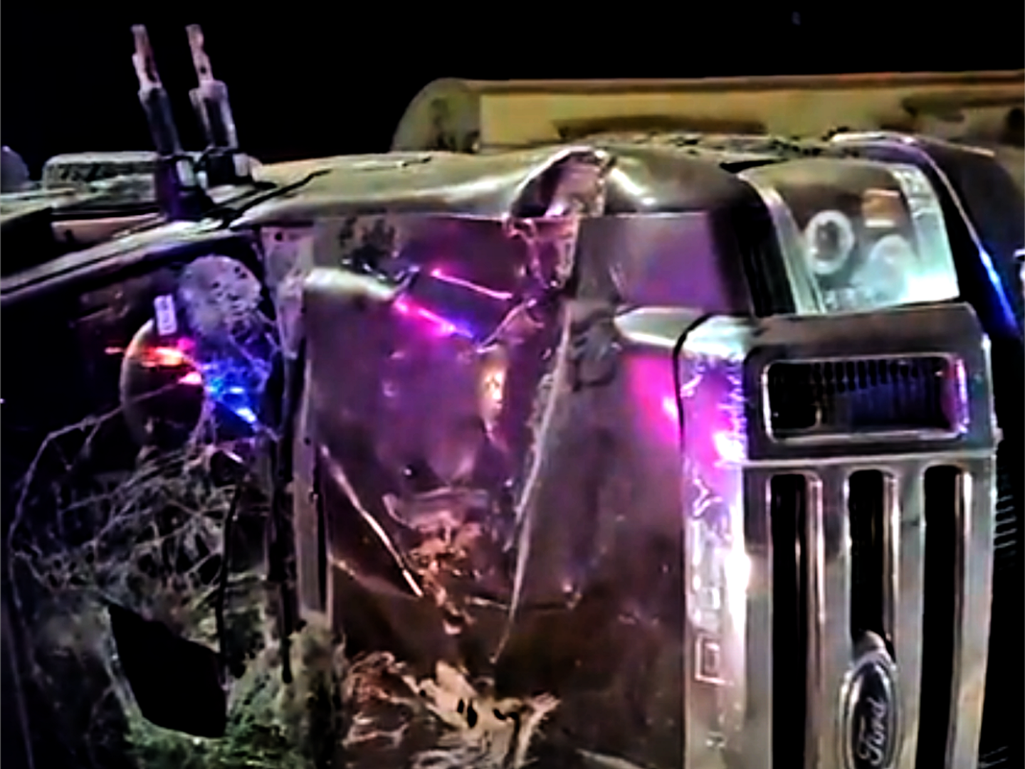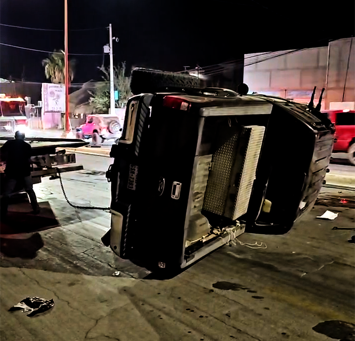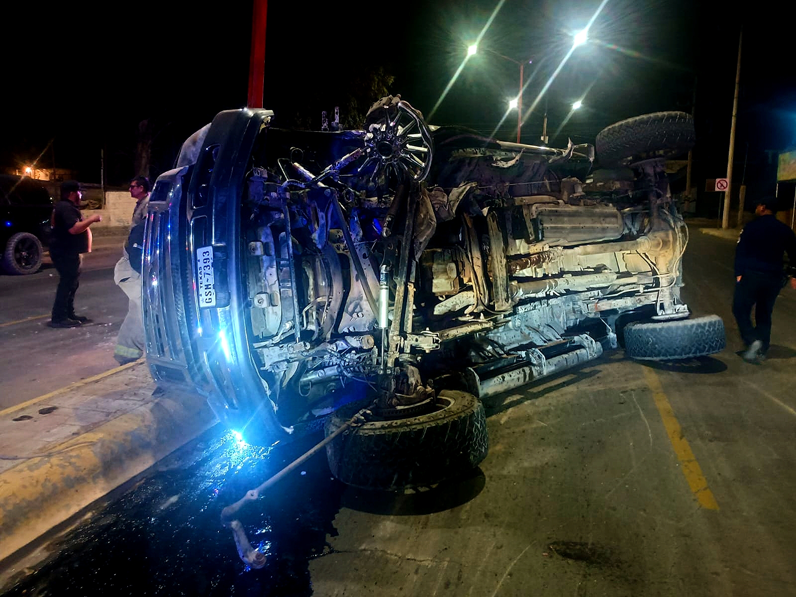 El vehículo involicrado en este accidente es una pickup Ford super duty color guinda con placas de Texas conducido por un masculino y dos femeninas.