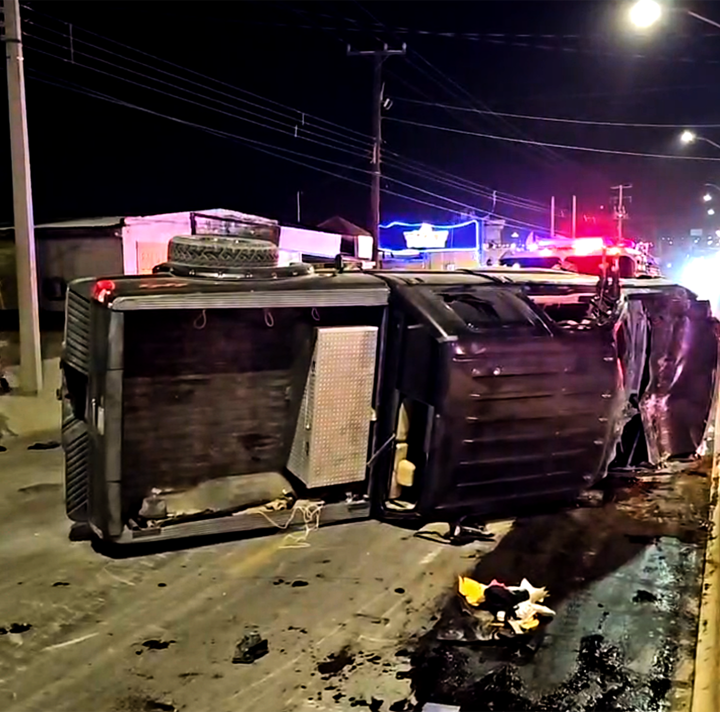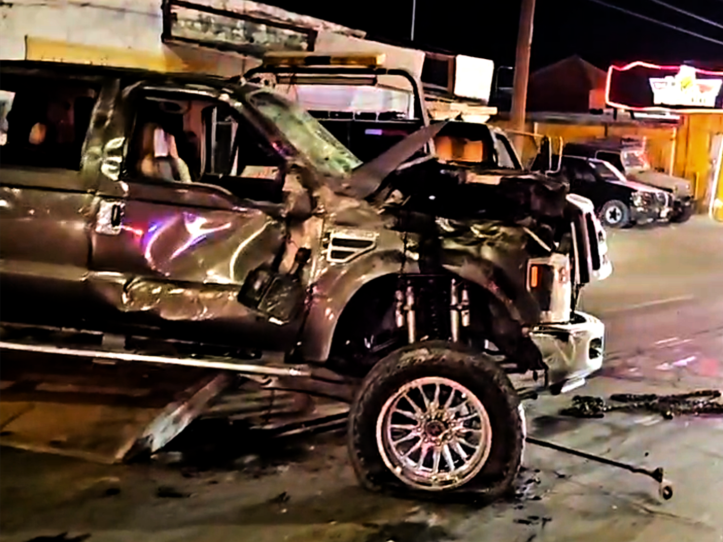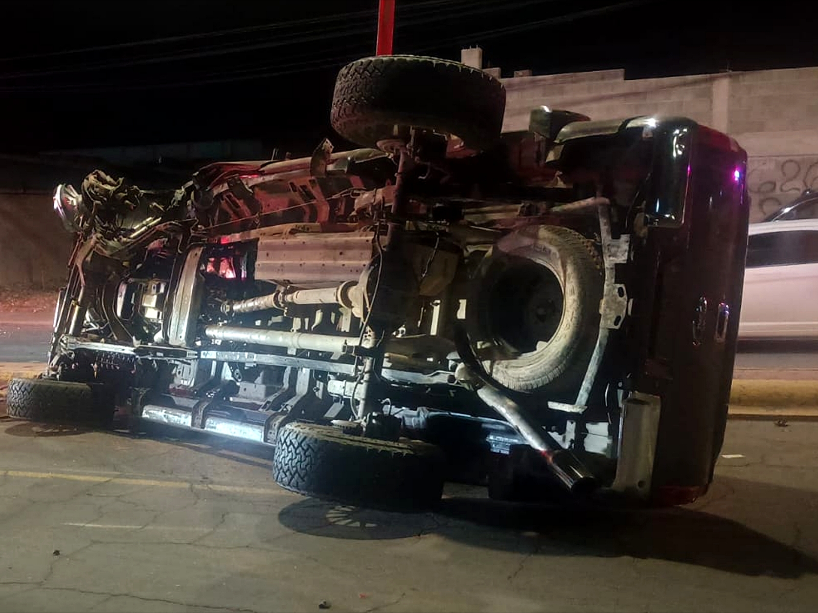 El vehículo involicrado en este accidente es una pickup Ford super duty color guinda con placas de Texas conducido por un masculino y dos femeninas.