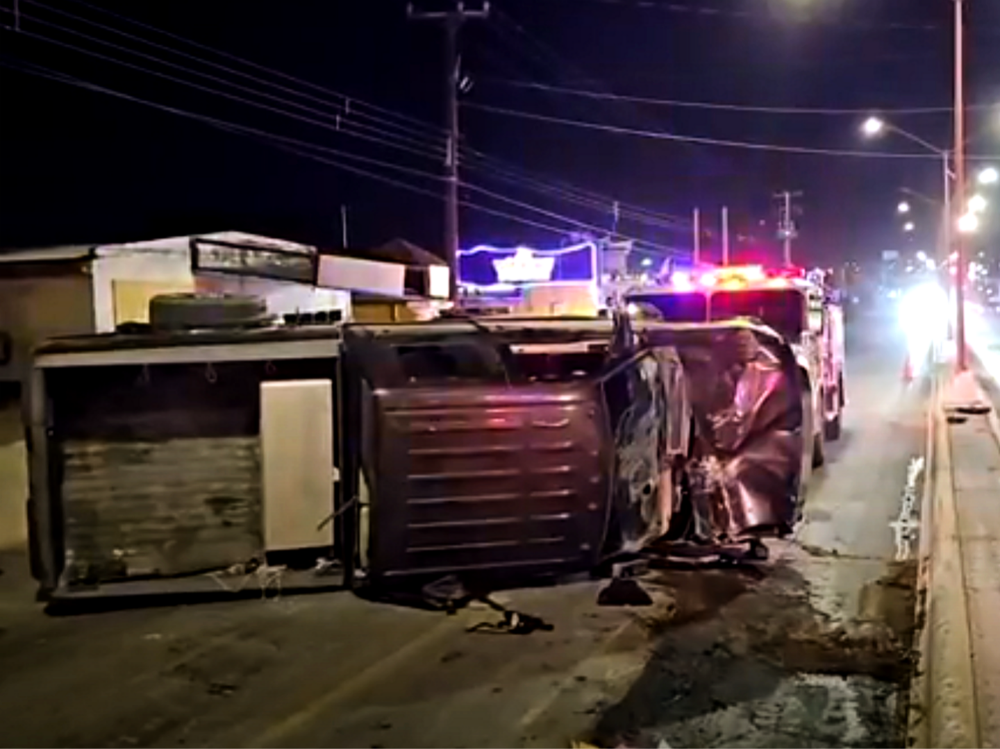 El vehículo quedó volcado sobre la libre comercio luego de impactarse contra dos arbotantes.