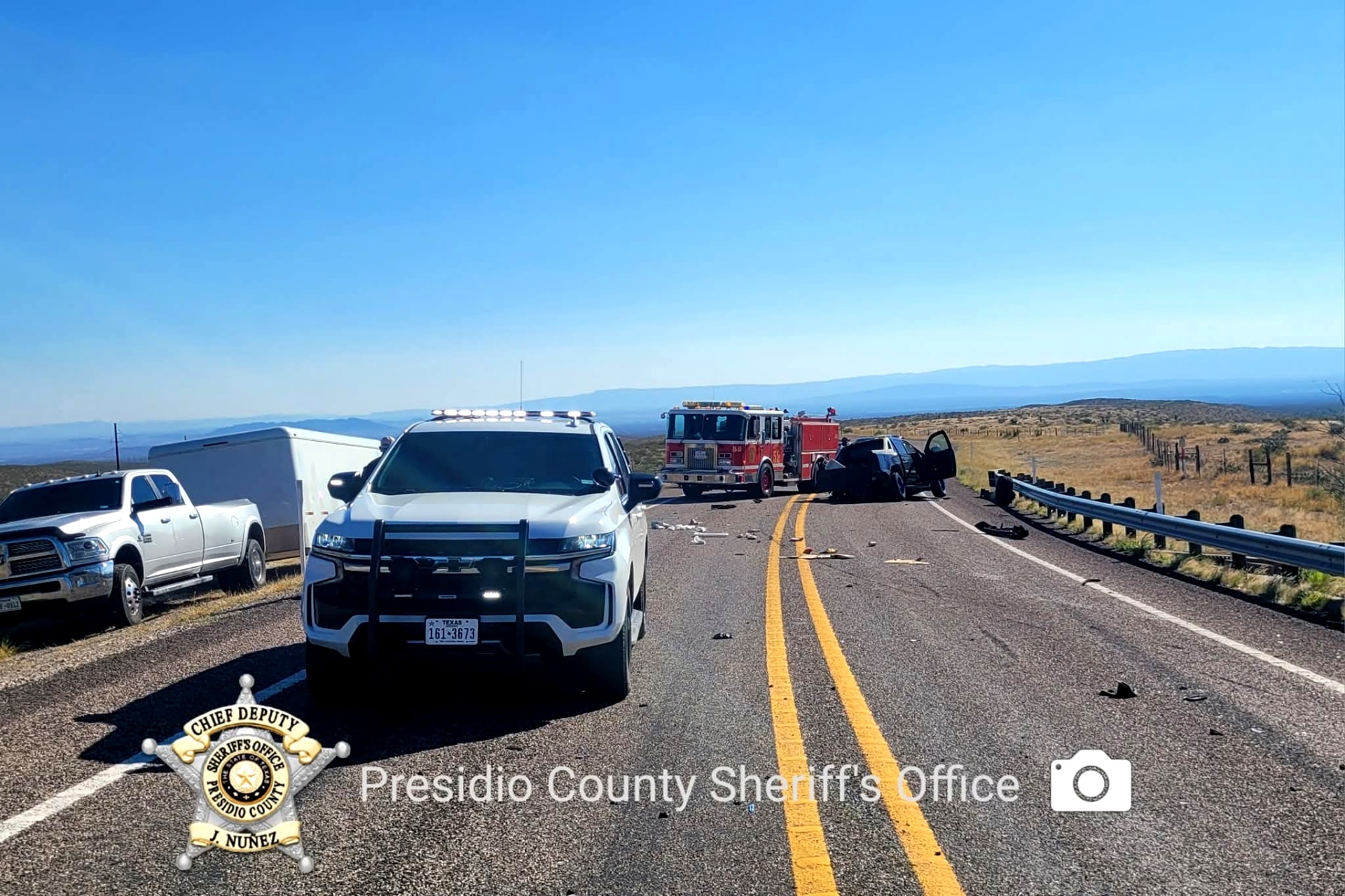 Los agentes del sheriff del condado de Presidio respondieron a una colisión de dos vehículos en la US 67 al norte del aeropuerto de Presidio aproximadamente a las 4:31 p.m. El tráfico se mueve lento y en un solo carril. Por favor, maneja con cuidado si está viajando en la US 67 entre Marfa y Presidio.