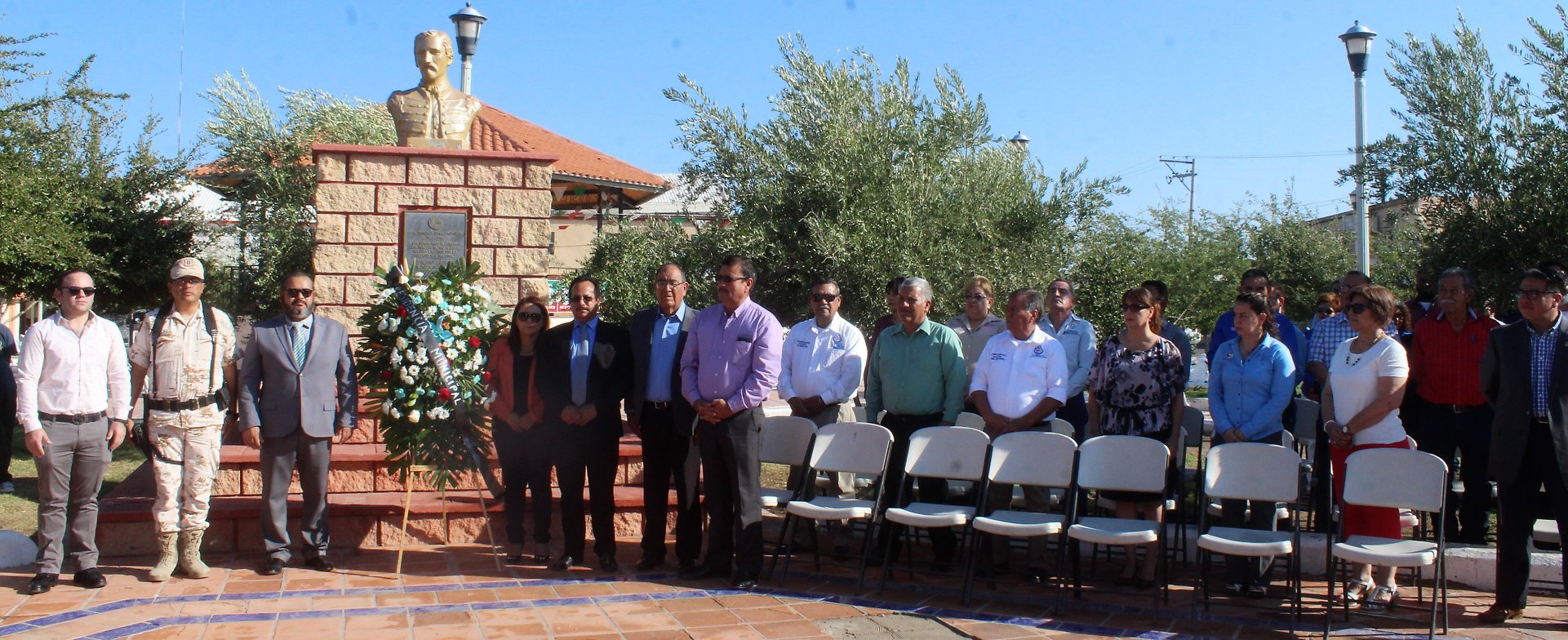 OJINAGA.-Autoridades civiles, educativas y militares, encabezados por el Presidente Municipal C. Martín Sánchez Valles, durante la mañana de hoy lunes 2 de septiembre, celebraron el 154 aniversario luctuoso del Gral. Manuel Ojinaga.