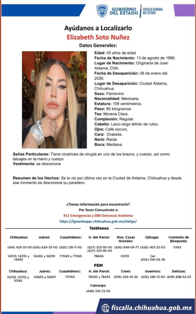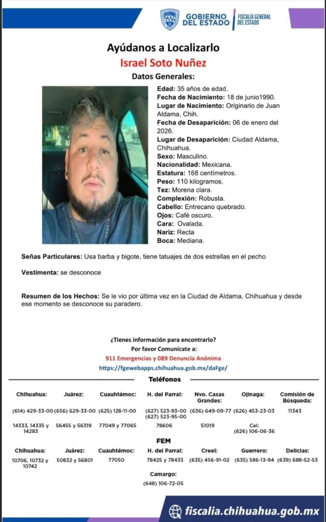 De manera extraoficial, fuentes de la Fiscalía General del Estado informaron que las tres personas localizadas sin vida —dos hombres y una mujer— corresponderían a los hermanos Soto Núñez, reportados como desaparecidos el pasado 6 de enero en el municipio de Aldama.